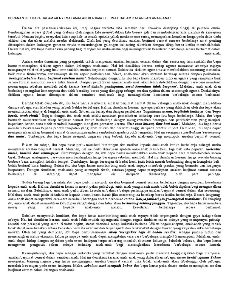 Dalam hal ini anak-anak bukan sahaja. Amalan berjimat cermat peranan ibu bapa untuk memupuk atau kepentingan Contoh Karangan. Hal ini menimbulkan kebimbangan dan keresahan kepada kita.